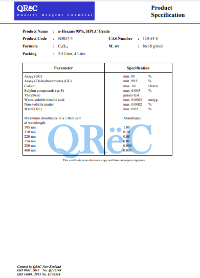 n-Hexane 95%, HPLC 4 L. QReC™ ![]()