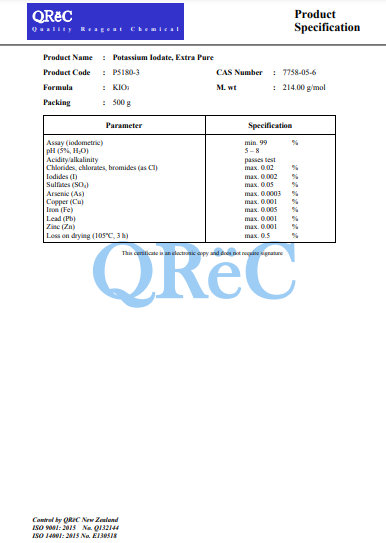 Potassium Iodate, Extra pure 500 g. QReC™Potassium Iodate, Extra pure 500 g. QReC™