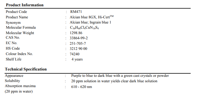Alcian blue 8GX (C.I.74240), Hi-CertTM 5g Himedia™