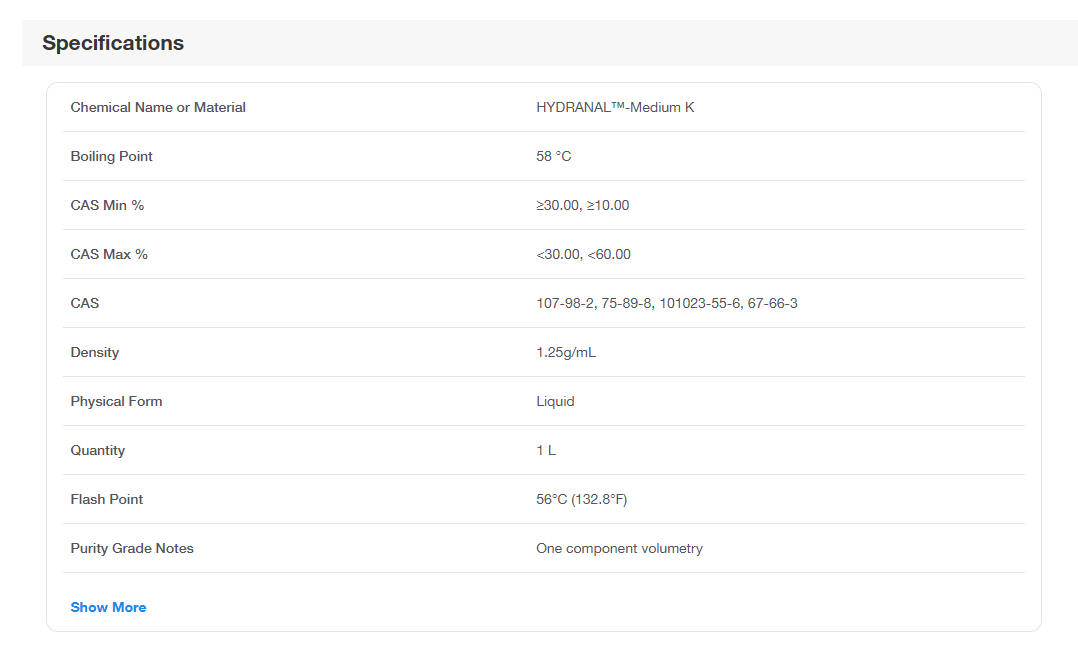 Hydranal™ Medium K 1L. Honeywell Fluka™