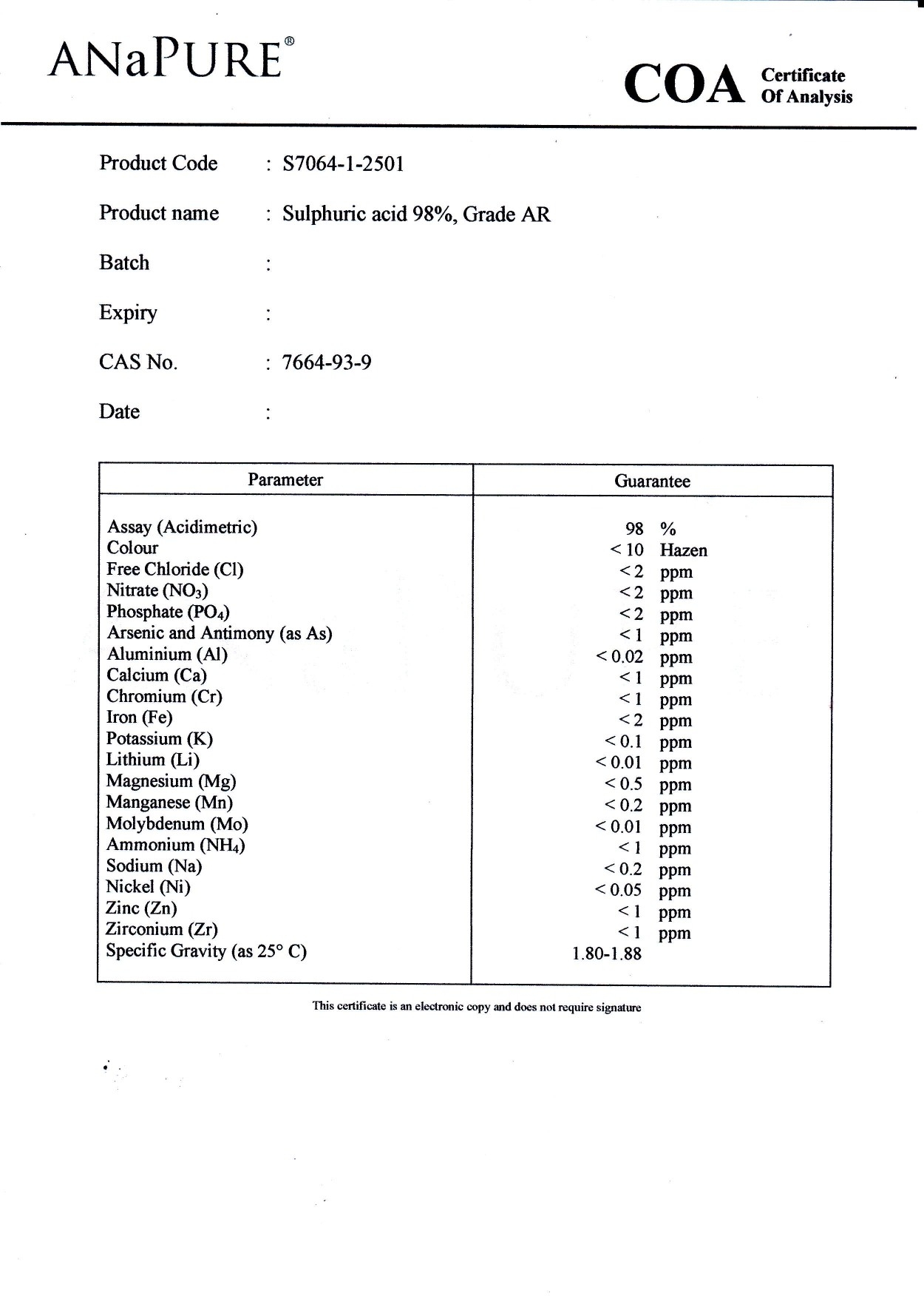 Sulfuric Acid 98%, AR 2.5L. ANaPURE™