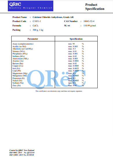 หยิบลงตะกร้า | Calcium Chloride Anhydrous, AR 500 g. QReC™ ![]()